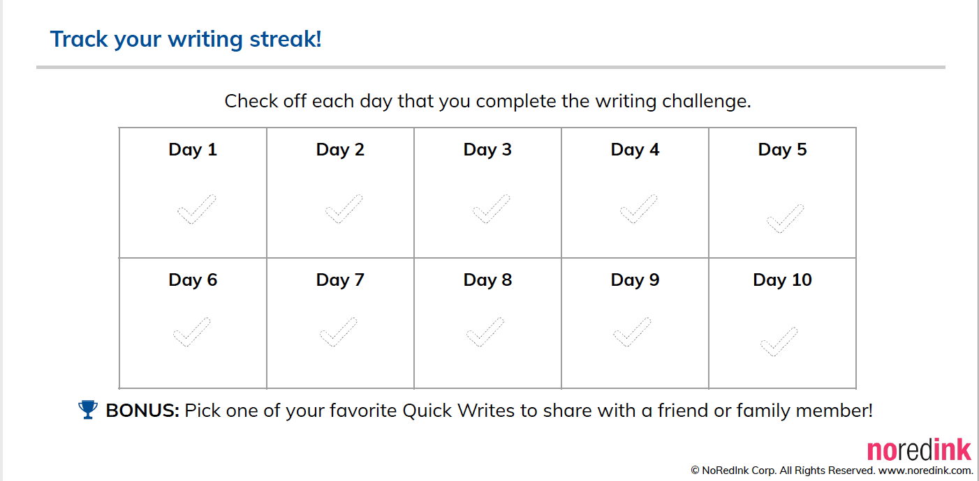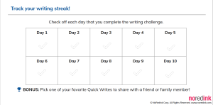 No Red Ink posted a 2-week writing challenge for students. 15 minutes of writing for 10 days.