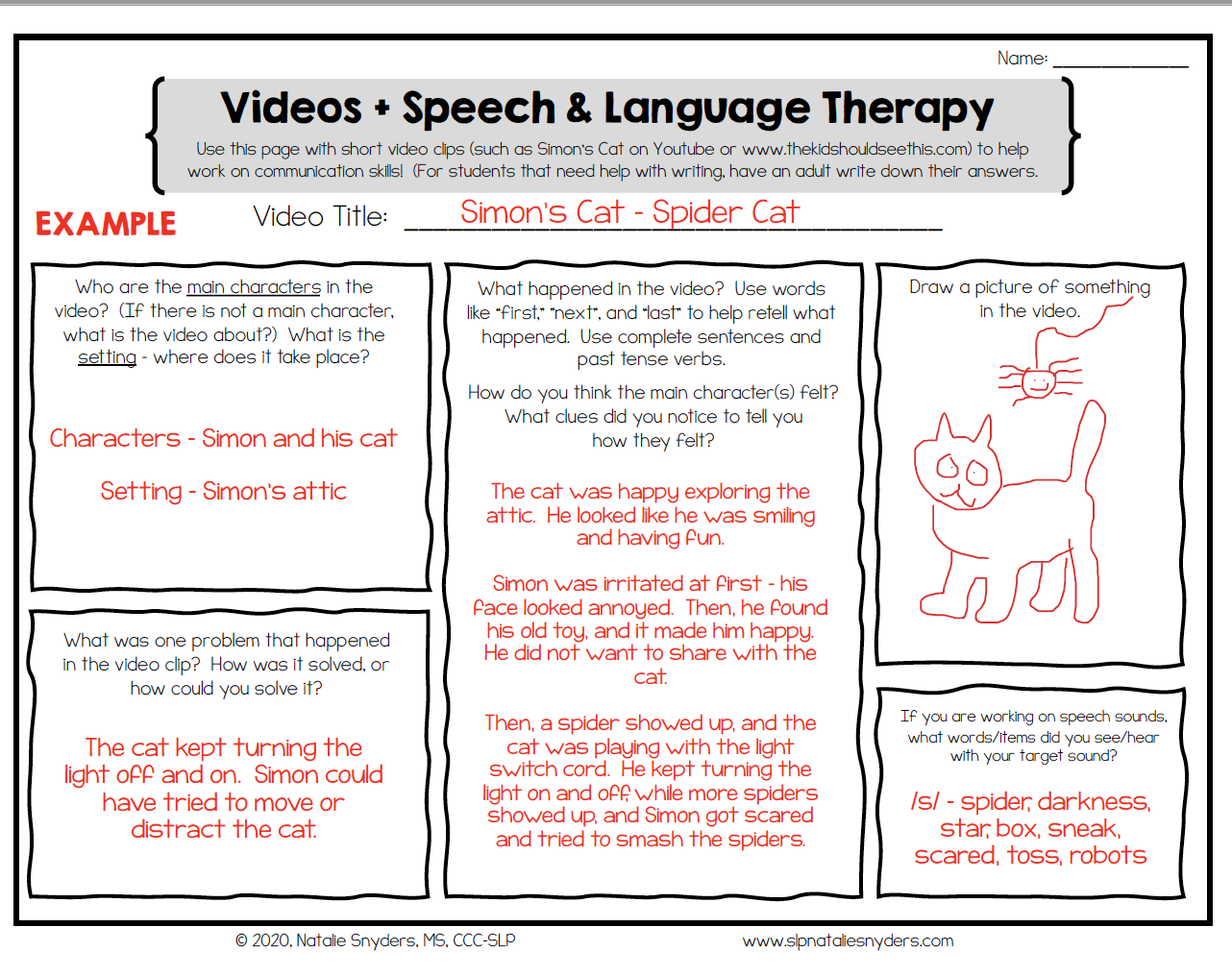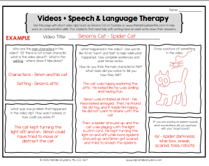 SLP Video Companion Freebie is another great free resource from Natalie Snyders. She provides you with a sheet with language prompts and a list of recommended videos your child can watch on YouTube (like my favorite, Simon's Cat).