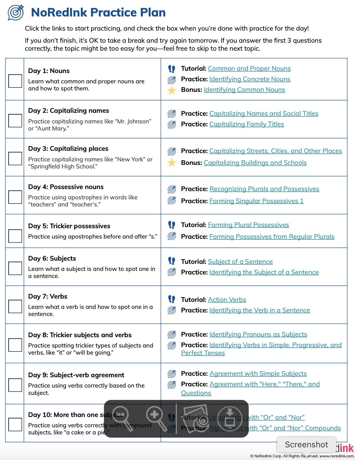 This is a great interactive plan that allows children to learn about the different types of nouns, verbs, adjectives and adverbs, fragment and run-on sentences, commas, and commonly confused words.